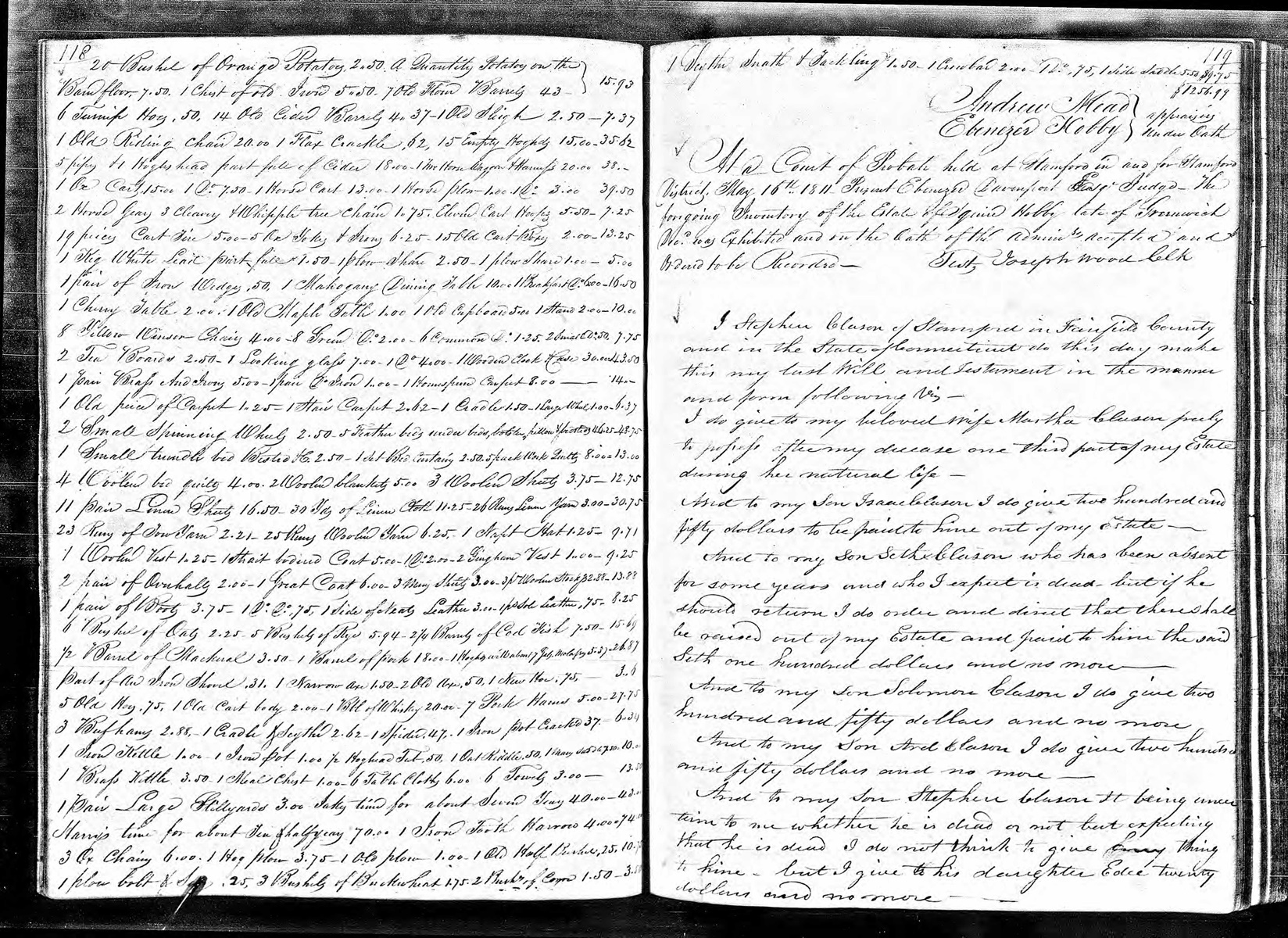 Probate Record of Stephen Clason