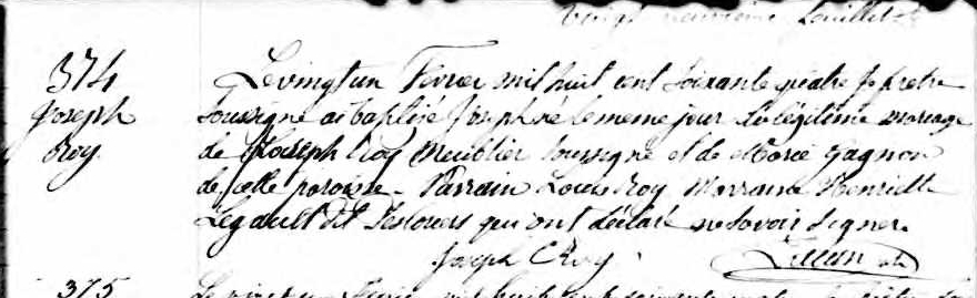 Christening Record of Joseph Roy