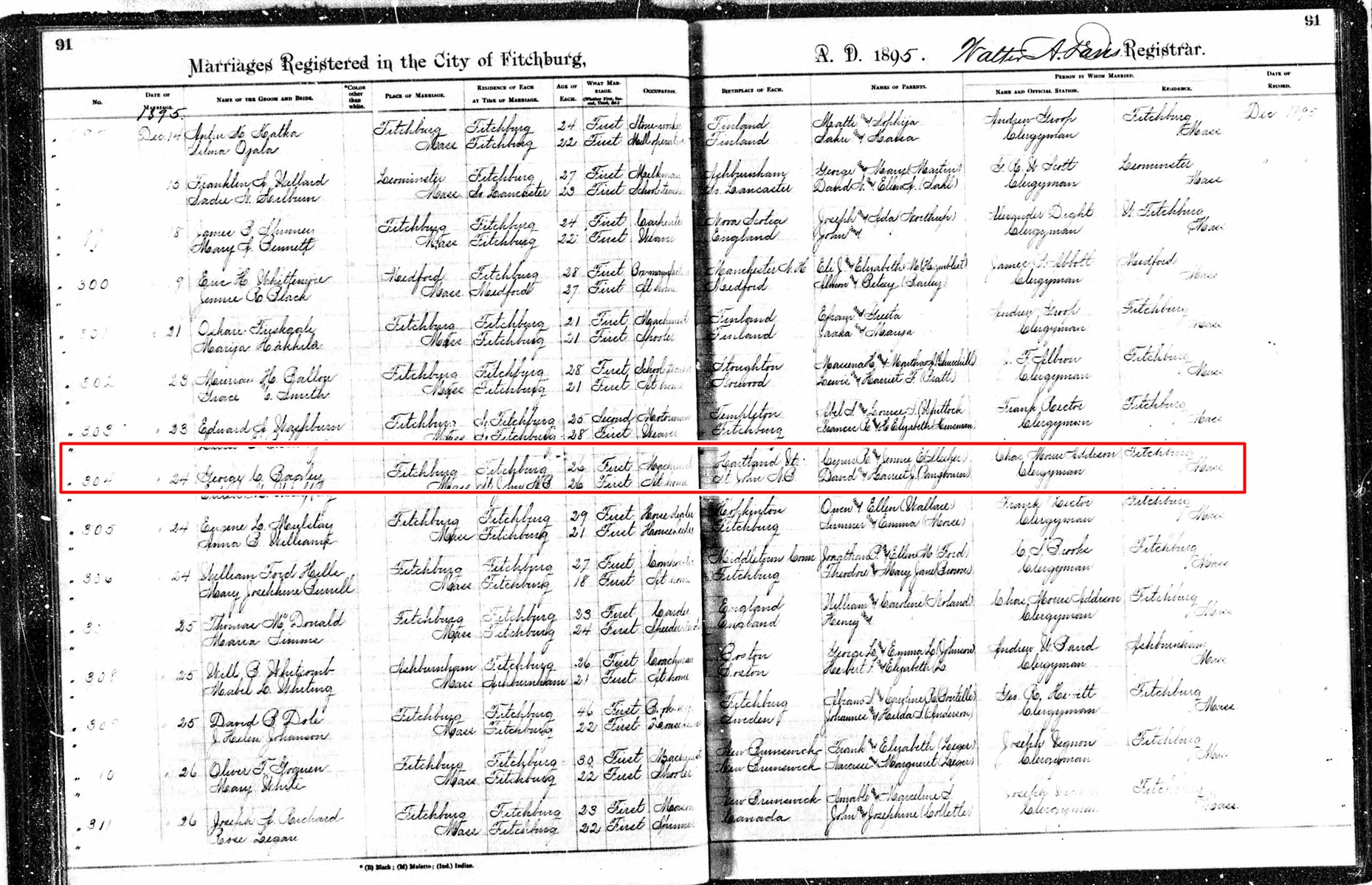 Marriage Record of Edith Whelpley and George C. Bagley