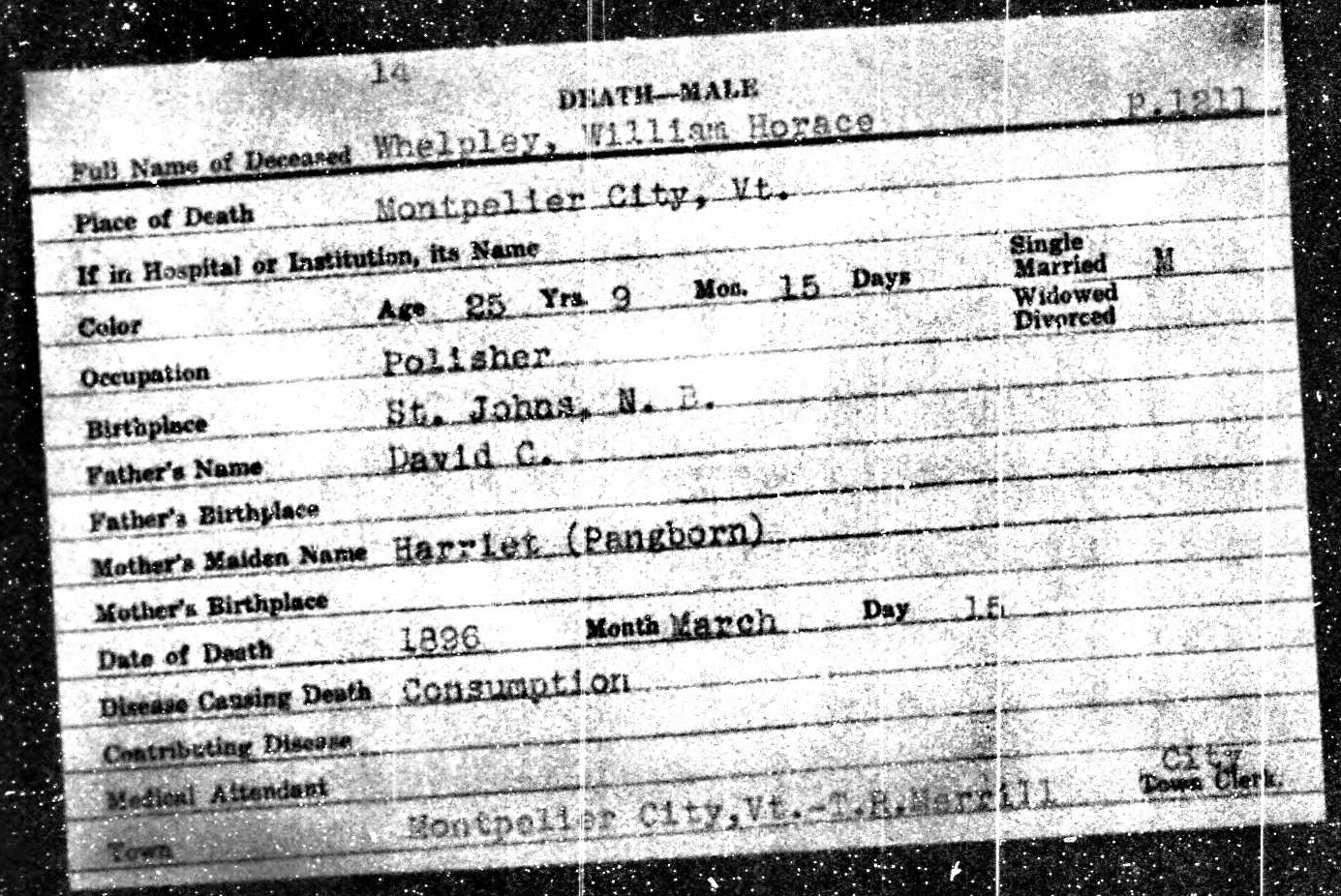 Death Record of William H, Whelpley