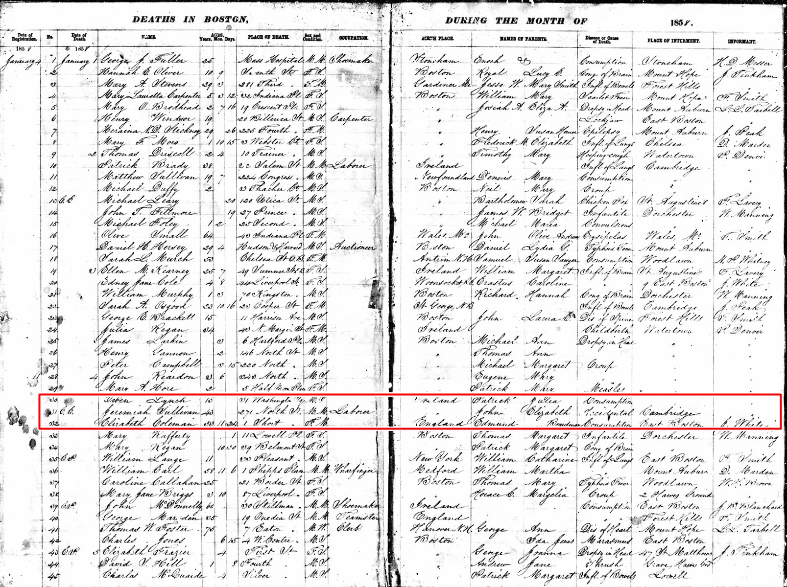 Death Record of Jeremiah Sullivan