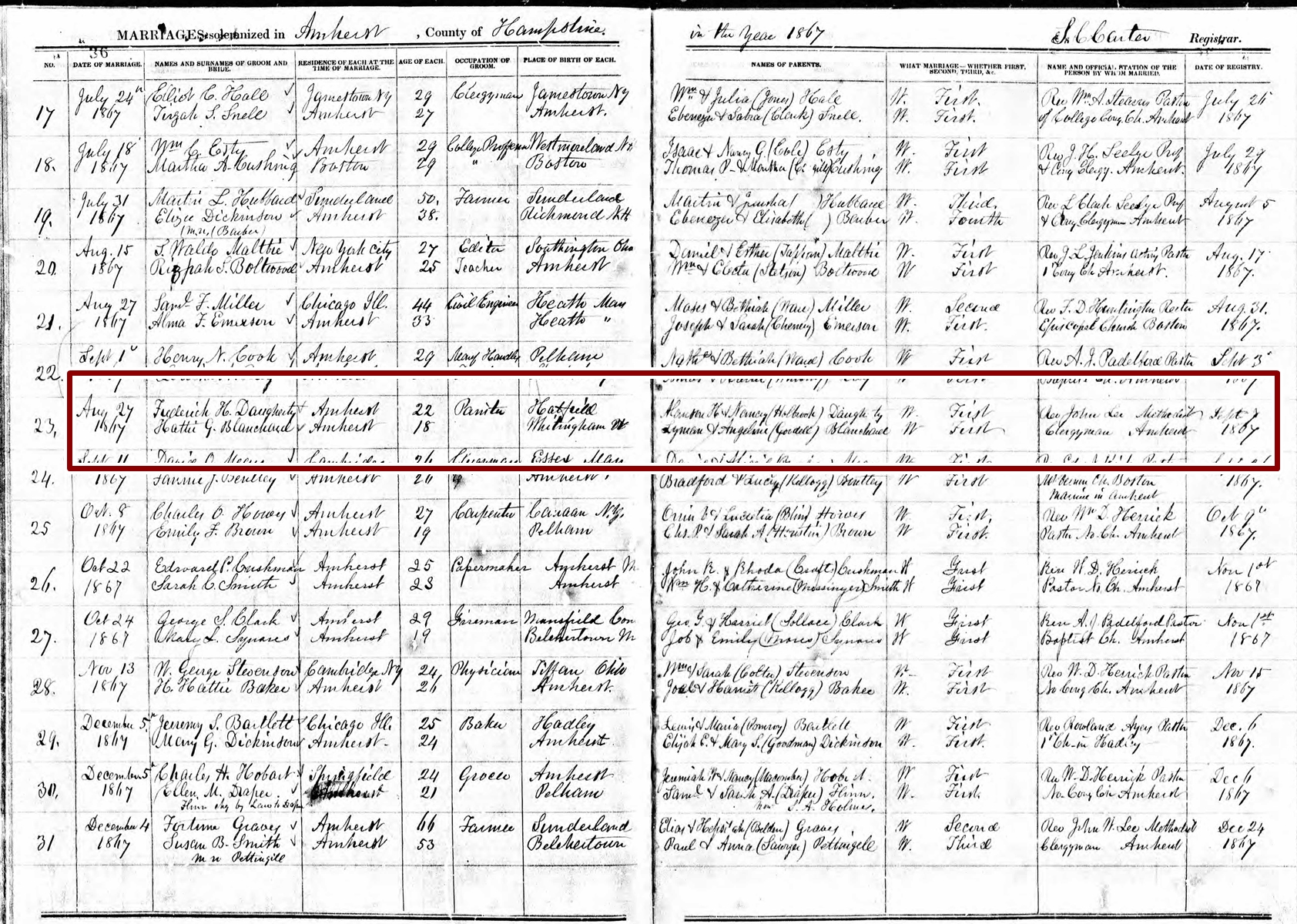 Marriage Record of Hattie G Blanchard and Frederich H Daugherty