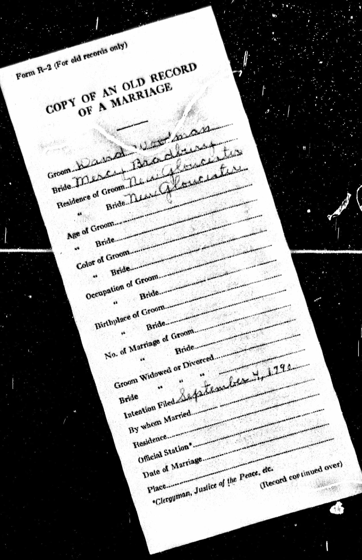 Marriage Intentions of Mercy Bradbury and David Woodman