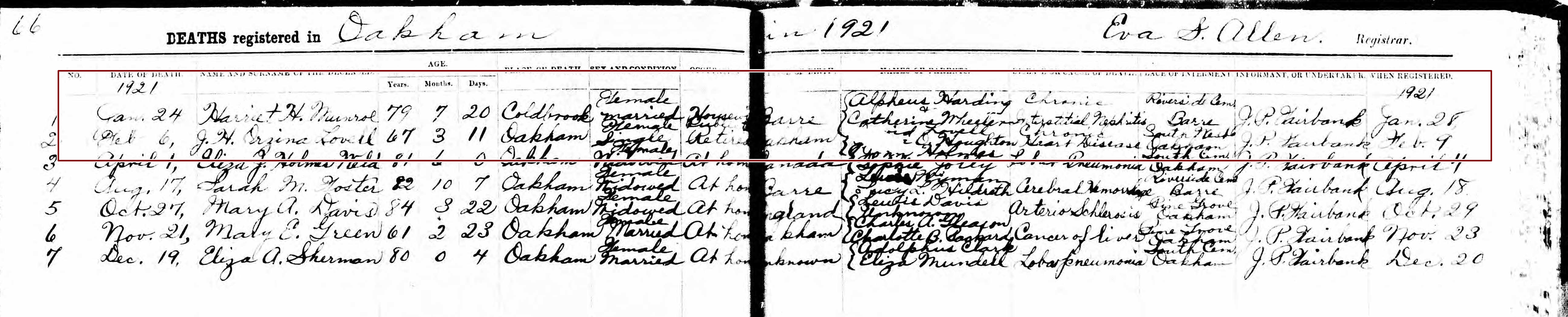 Death Record of Harriet H. Monroe