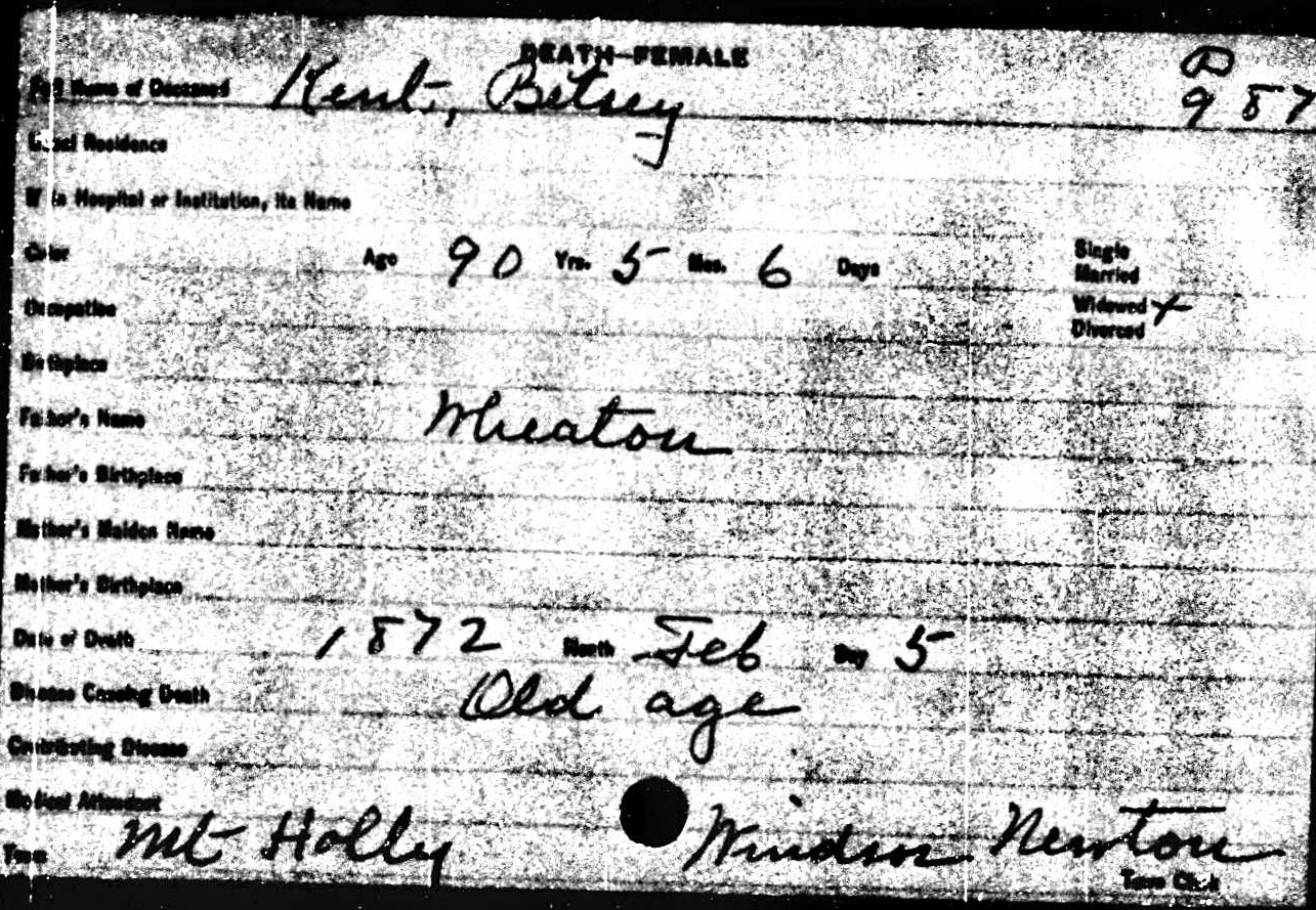 Death Record of Betsey Kent