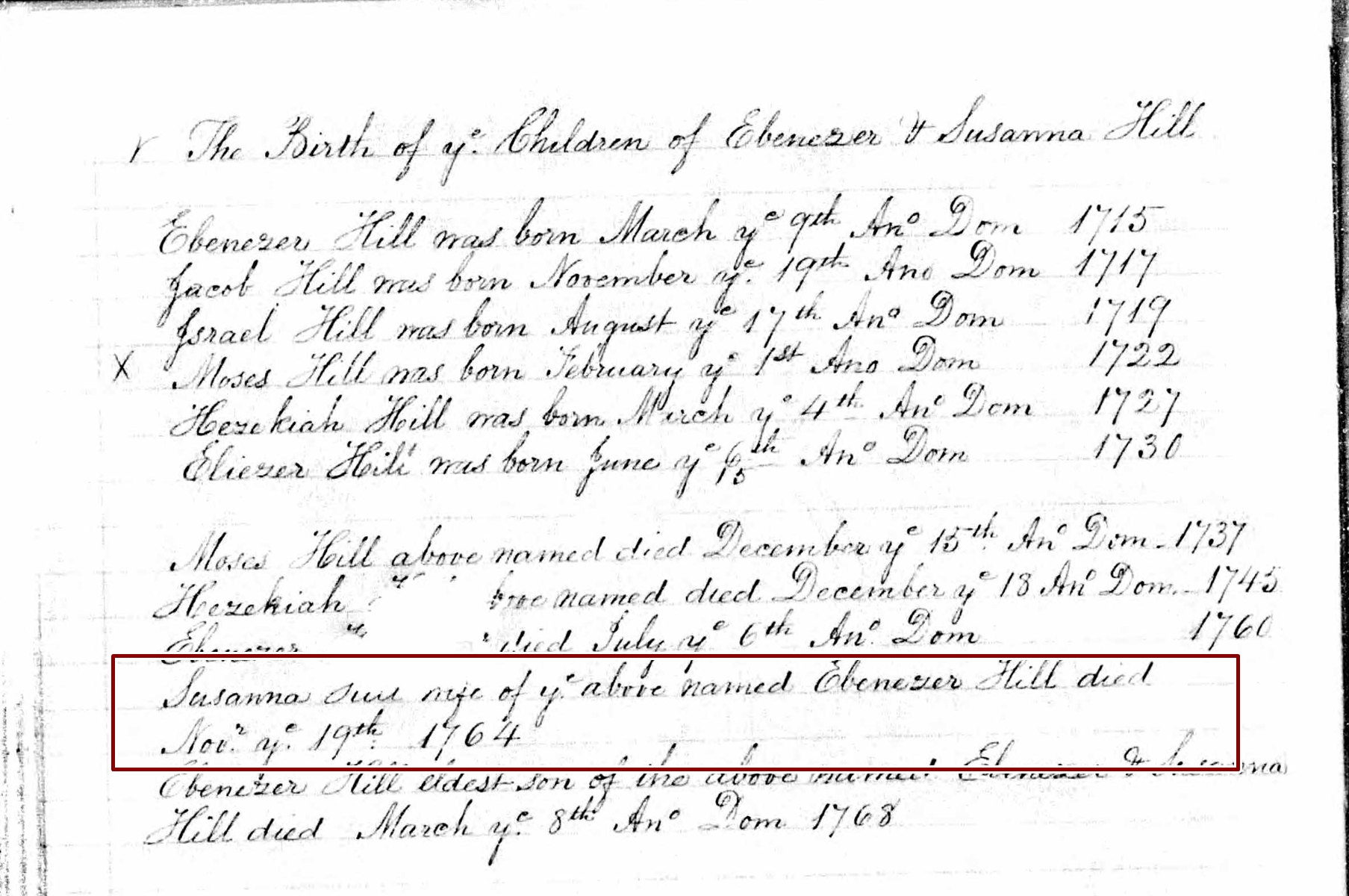 Death Record of Susanna Hill
