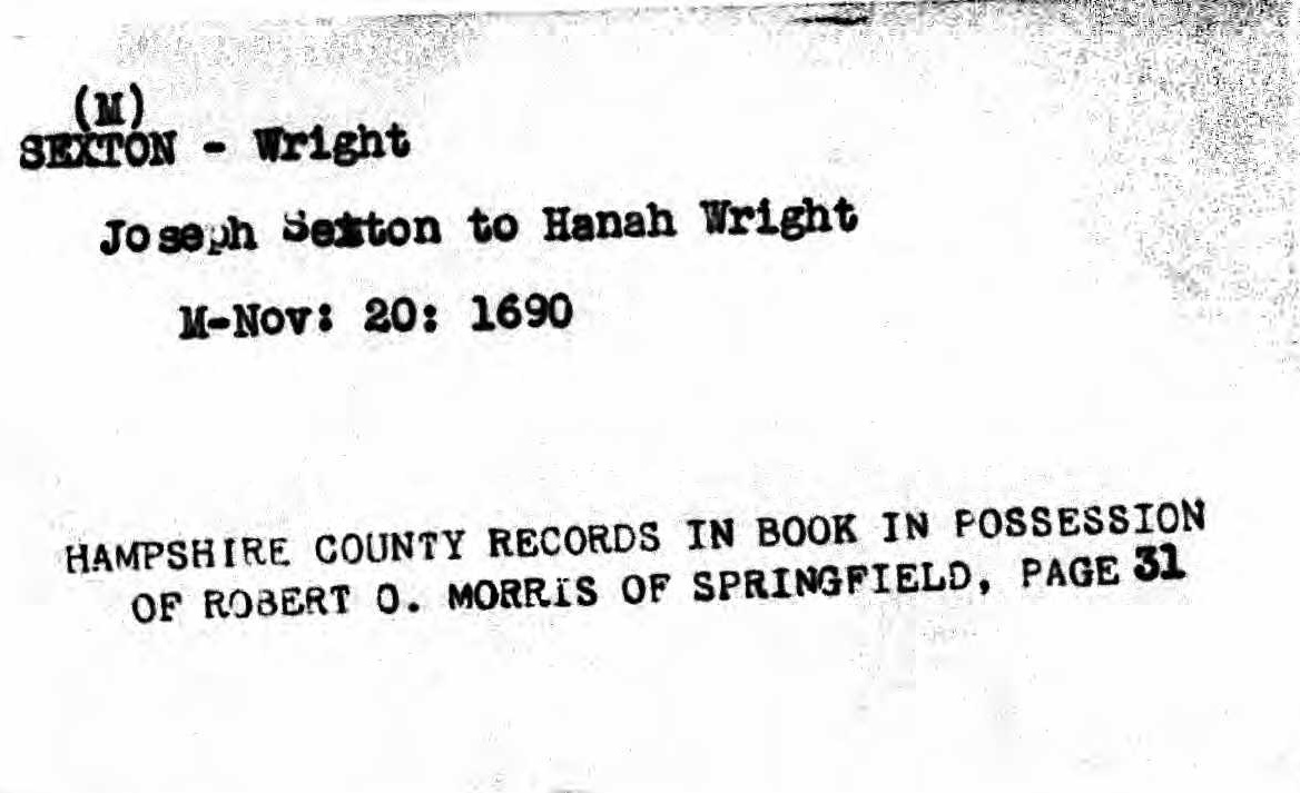 Marriage Record of Hannah Wright and Joseph Sexton