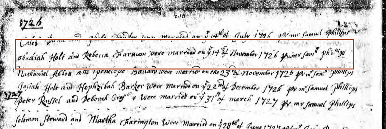 Marriage Record of Rebecca Farnam and Obadiah Holt