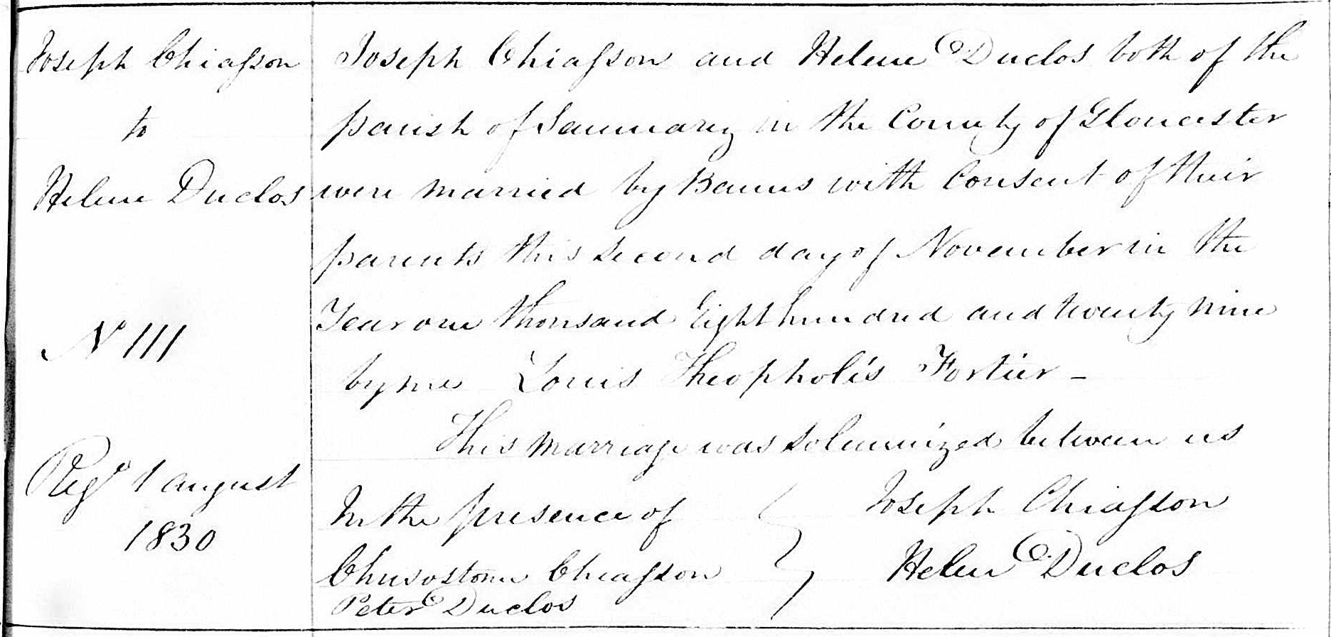 Marriage Record of Hélène Duclos and Joseph Chiasson