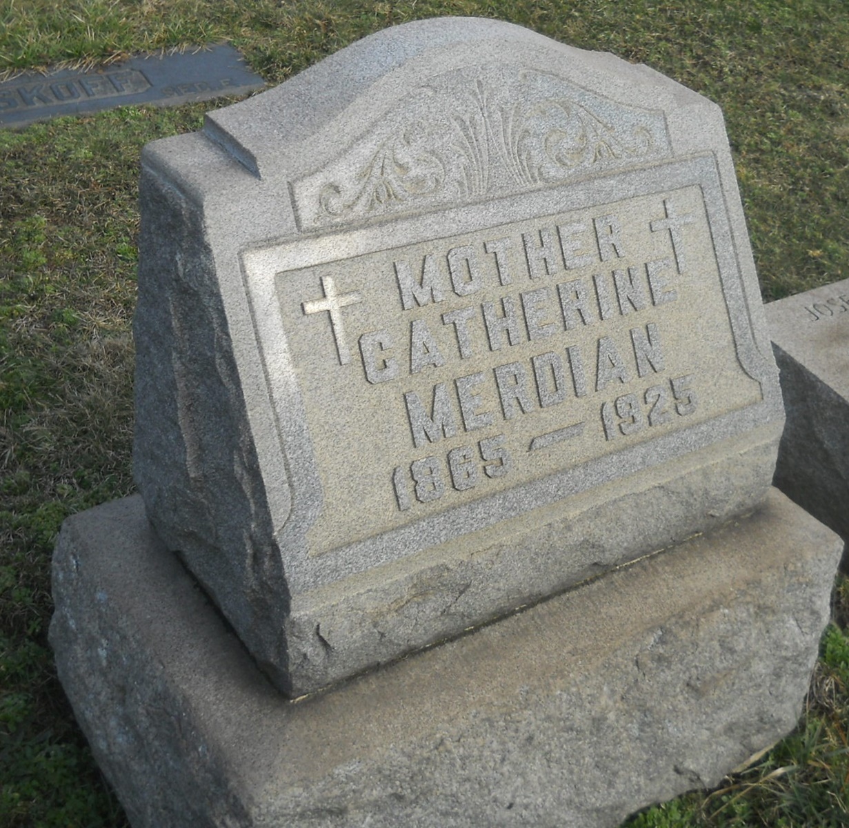 Catherine, age 34 years, and Adam Merdian, age 40 years, appeared on the US Census of 1900 at 3 High Street, Etna, Allegheny County, Pennsylvania.2 Catherine, age 44 years, and Adam Merdian, age 50 years, appeared on the US Census of 1910 at 104 Penn Street, Sharpsburg, Allegheny County, Pennsylvania.5 Catherine, age 54 years, and Adam Merdian, age 60 years, appeared on the US Census of 1920 at 104 Penn Street, Sharpsburg, Allegheny County, Pennsylvania.6 Catherine Glatz died on 4 November 1925 at Sharpsburg, Allegheny County, Pennsylvania, at age 60 in diabetic coma.7,1
