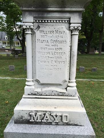 William Mayo, age 26, married Maria Goddard, age 26 , daughter of Martin Goddard and Sylvia Johnson, on 13 June 1843 at the Orange, Massachusetts.