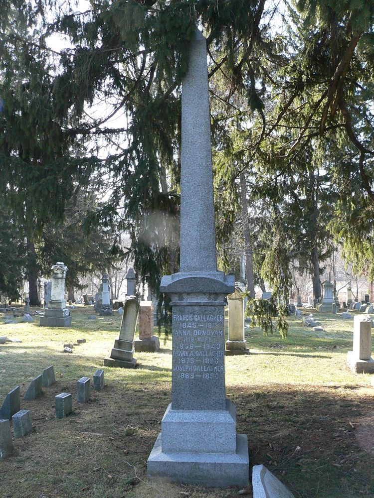 Anna Elizabeth Donovan married Francis Gallagher, son of Michael Gallagher and Mary Degnan, in 1873.1 As of 1873,her married name was Gallagher. Anna, age 20 years, and Francis Gallagher, age 29 years, appeared on the US Census of 1875 at Binghamton, Broome County, New York.5 Anna, age 25 years, and Frank Gallagher, age 34 years, appeared on the US Census of 1880 at 145 Oak Street, Binghamton, Broome County, New York.6 Anna, age 45 years, and Frank Gallagher, age 54 years, appeared on the US Census of 1900 at 235 Oak Street, Binghamton, Broome County, New York.1 Anna, age 50 years, and Francis Gallagher, age 59 years, appeared on the US Census of 1905 at Binghamton, Broome County, New York.7 Anna, age 55 years, and Frank Gallagher, age 64 years, appeared on the US Census of 1910 at 235 Oak Street, Binghamton, Broome County, New York.8 Anna, age 60 years, and Bridget Gallagher, age 65 years, appeared on the US Census of 1915 at Binghamton, Broome County, New York.9 In 1917 Anna lived at Binghamton, Broome County, New York, In 1917, she was living with her son, Aloysius, at 15 Lathrop Avenue, Binghamton, New York. She was a widow. Anna, age 65 years, and Bridget Gallagher, age 70 years, appeared on the US Census of 1920 at 235 Oak Street, Binghamton, Broome County, New York.10 Anna, age 70 years, appeared on the US Census of 1925 at Binghamton, Broome County, New York.11 Anna, age 75 years, appeared on the US Census of 1930 at 37 Chestnut Street, Binghamton, Broome County, New York, She was a widow.12 Anna, age 85 years, appeared on the US Census of 1940 at 37 Chestnut Street, Binghamton, Broome County, New York.13 She died on 25 March 1943 at Binghamton, Broome County, New York, at age 88.2,14 Anna's obituary of 26 March 1943, reads: