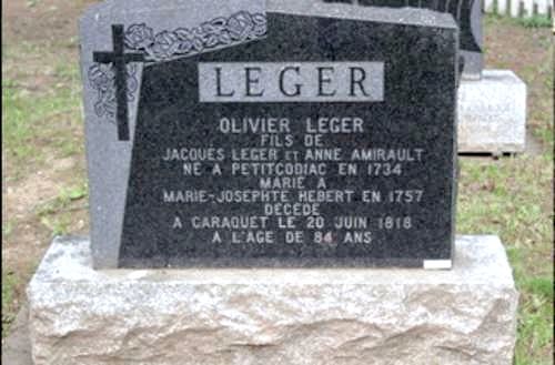 Oliver Légère married Marie-Josèpte Hébert, daughter of Jean Hébert and Élisabeth Bourg, circa 1758.1,2 Oliver Légère died on 10 June 1818 at Caraquet, New Brunswick, Canada.1,2,4,3 Oliver was buried at Cimetière Saint-Pierre-aux-Liens, Caraquet, New Brunswick, Canada.3